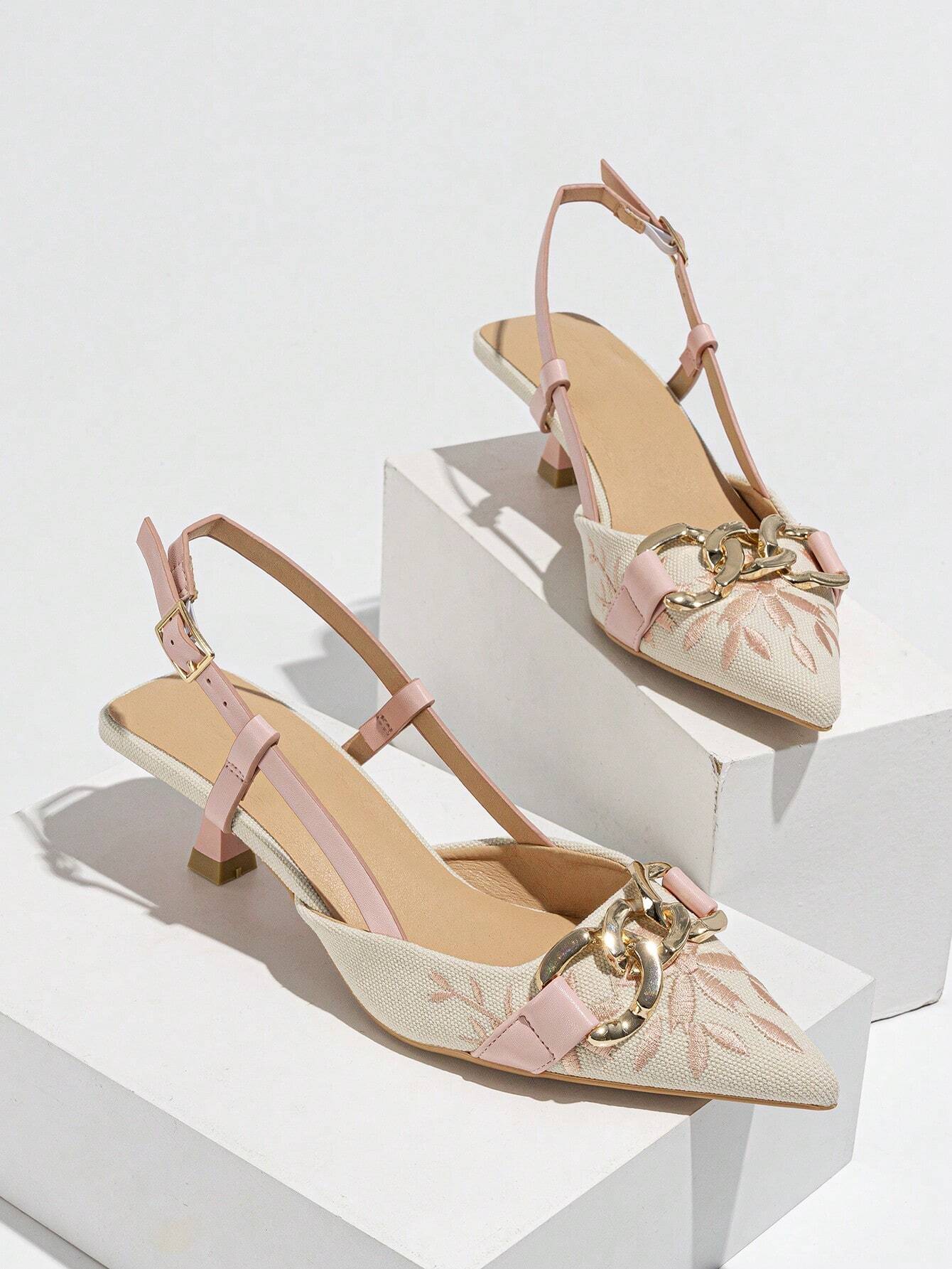 sandalias slingback bordadas de punta afilada para mujer - transpirables, tacón de a para 5