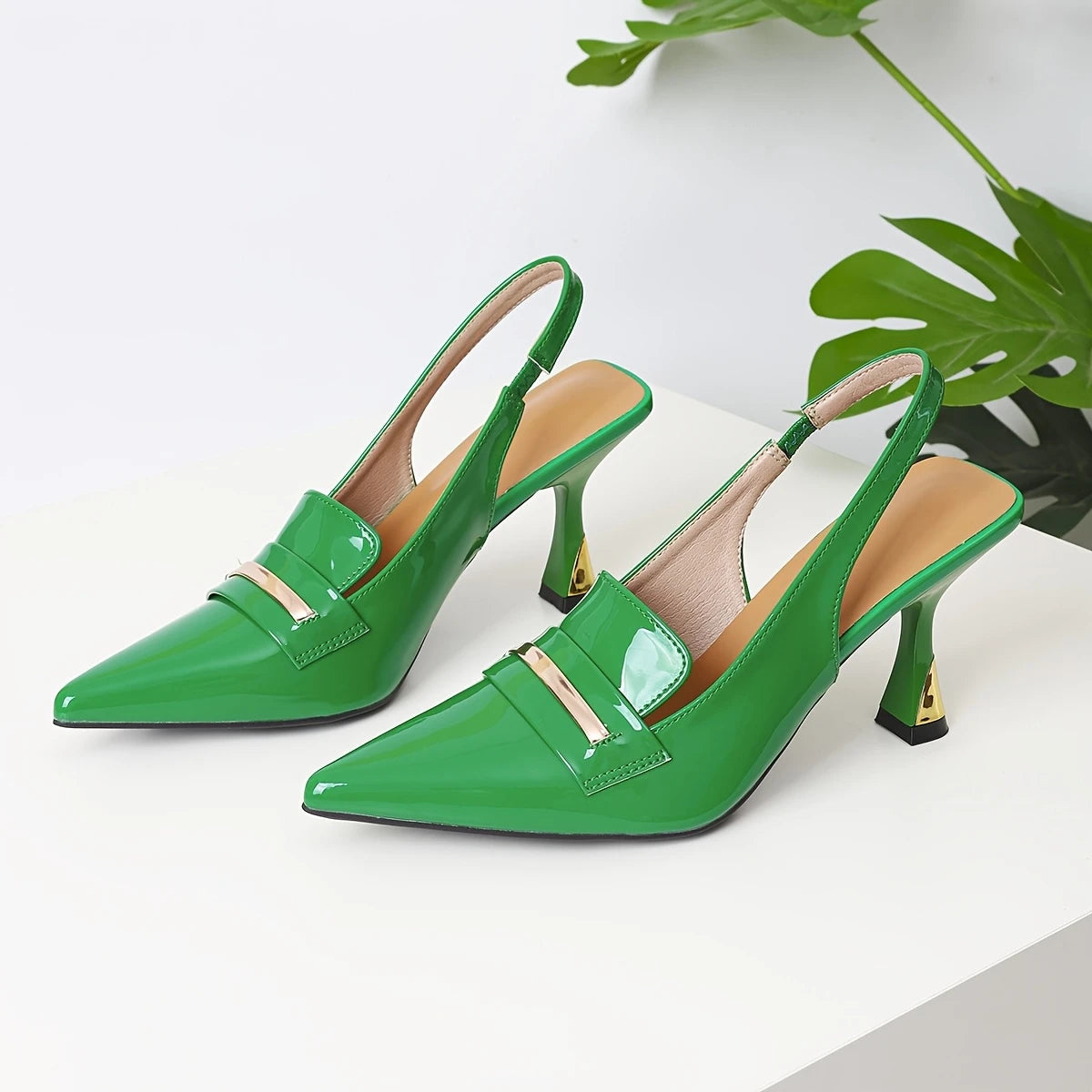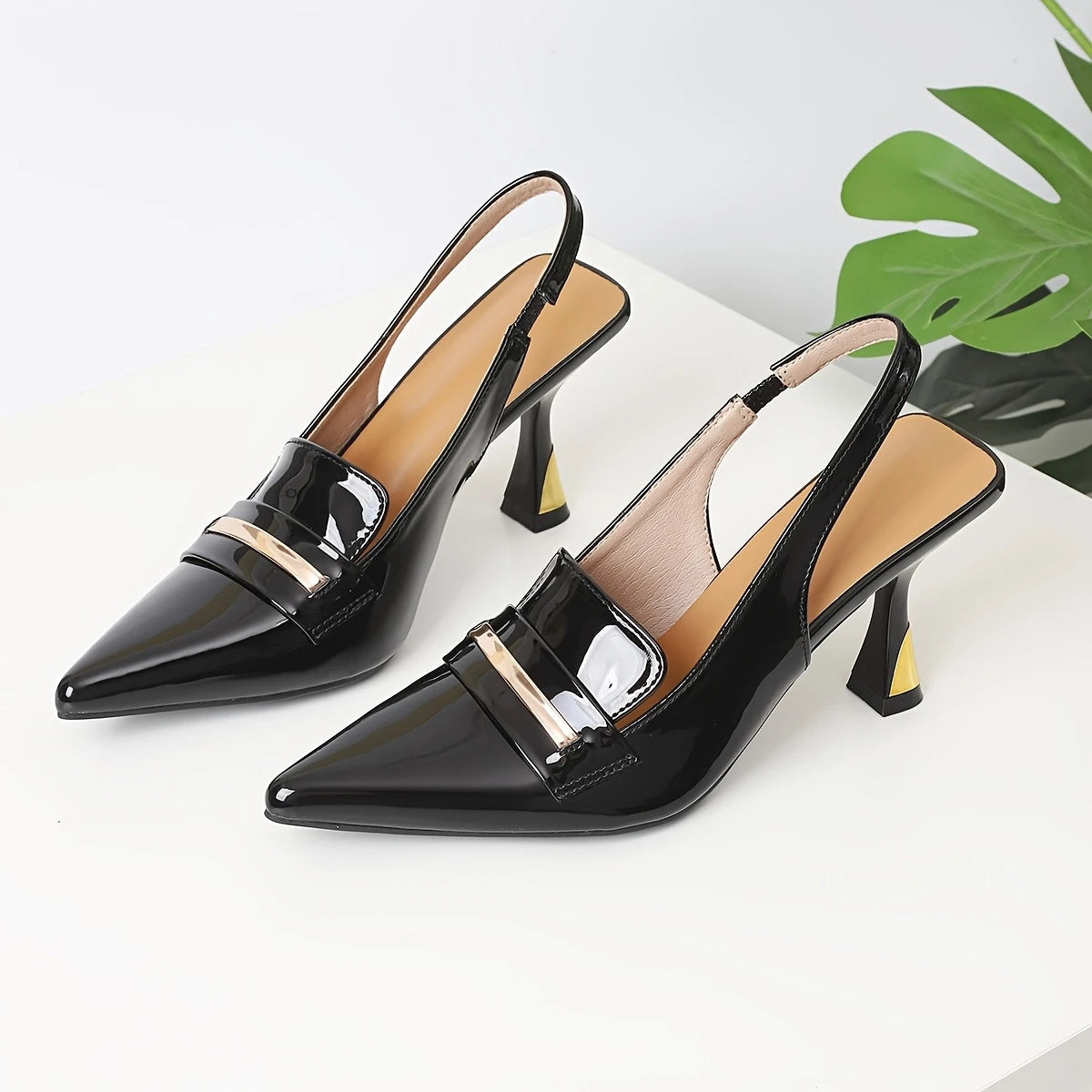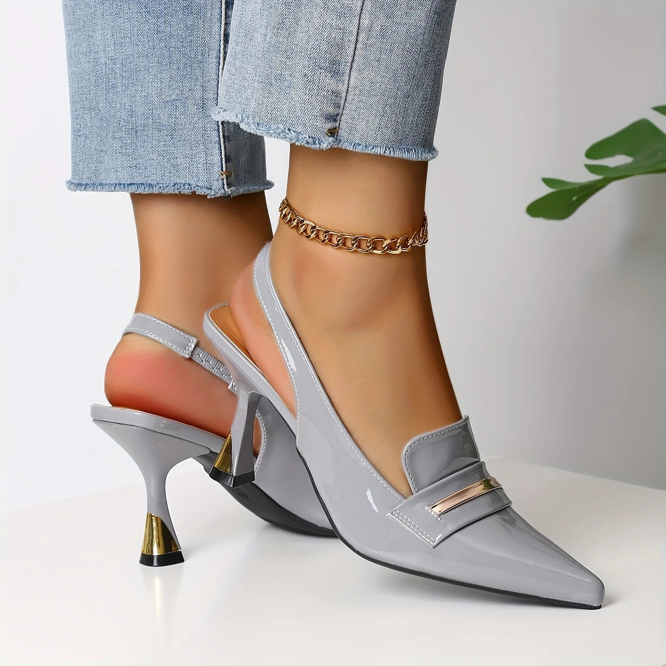 Luce un estilo elegante con estos zapatos slingback, diseñados para destacar en cualquier ocasión. La punta afilada añade un toque refinado que estiliza tu figura con cada paso.