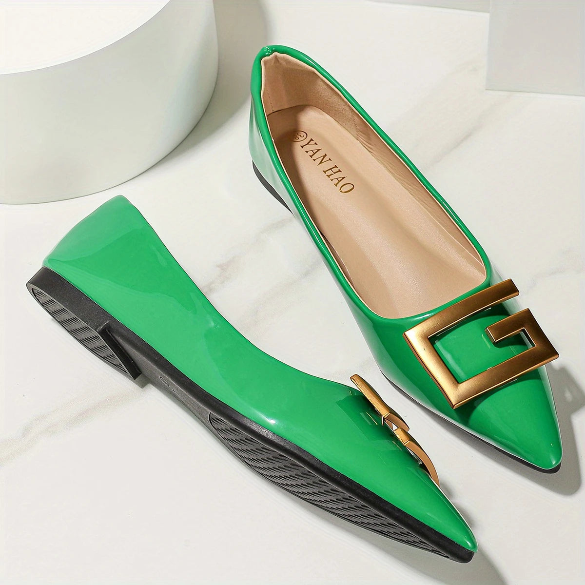 👠 Zapatos Golden Point de Punta Fina ✨ con Hebilla Dorada Geométrica 🔶 y Estilo Sofisticado 💼 para Cada Ocasión 🌟